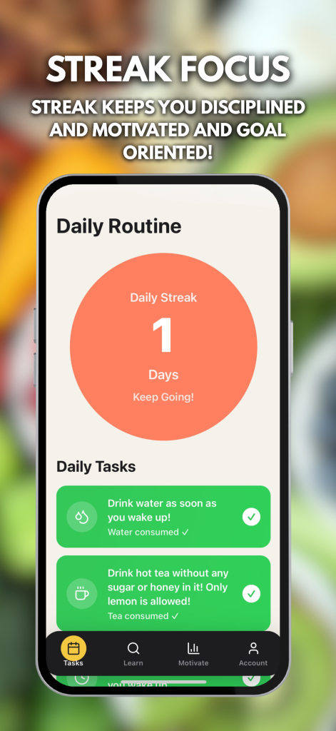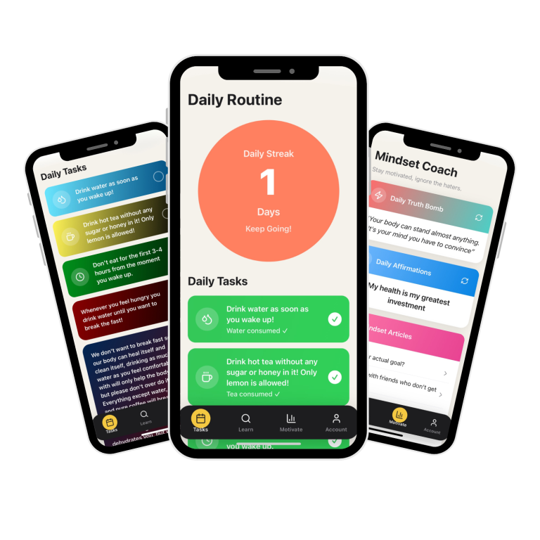 Instantly receive your daily schedule, hydration plan, and mindset practices.